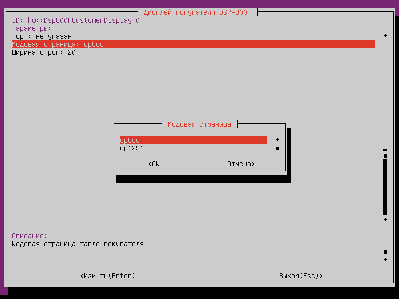 - Кодовая страница – кодировка, в которой кассовое ПО передает сообщения на информационное табло. Для выбора доступны значения –