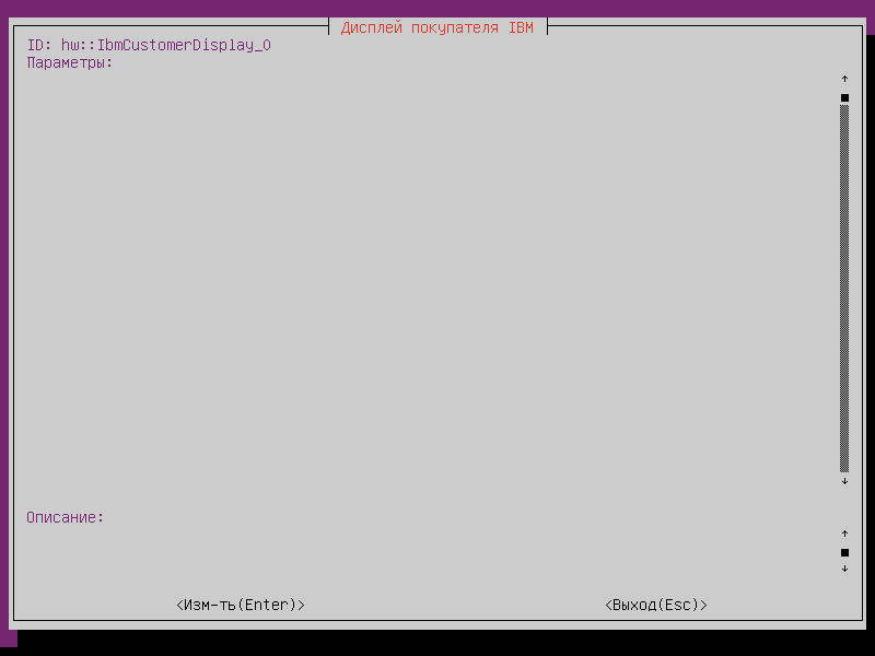 Драйвер IBM используется для подключения к кассе дисплеев покупателя, работающих по протоколу IBM.
