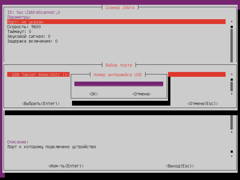Отобразится диалог ввода номера интерфейса USB: - Указать значение