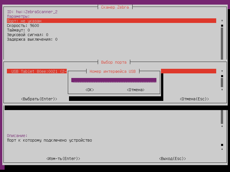 Отобразится диалог ввода номера интерфейса USB: - Указать значение 0 в появившемся диалоге.