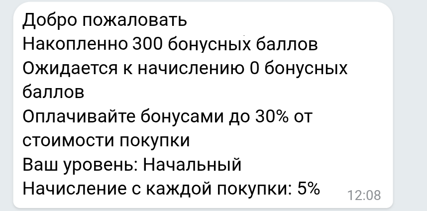 Накоплено ${#BonusModule.balance()} бонусных баллов\n\