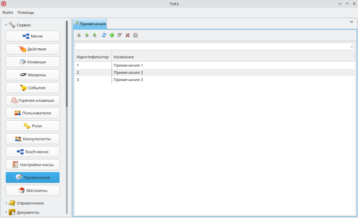 Кассовое ПО Artix позволяет отображать кассиру или покупателю несколько типов примечаний-диалогов и запускать примечания-скрипты при выполнении различных действий на кассе. В утилите администрирования Yuki можно просматривать, добавлять, добавлять копированием, редактировать и удалять примечания. Кроме того, можно просматривать результат выполнения примечаний. Данные о примечаниях загружаются из БД и доступны для просмотра в пункте "Примечания" раздела "Сервис".
