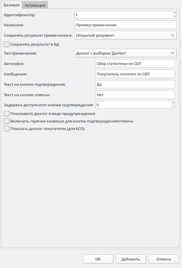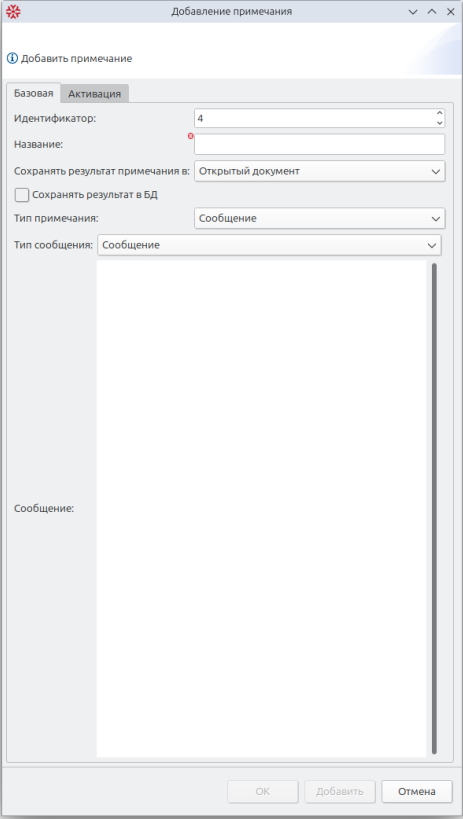 - Вкладка "Базовая" включает основные характеристики примечаний всех типов: