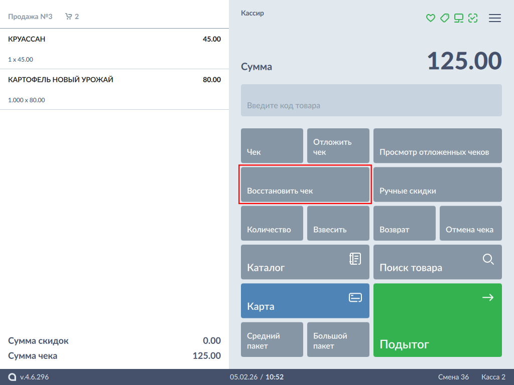 - Изменение восстановленного чека. Восстановленный чек полностью идентичен обычному документу продажи.