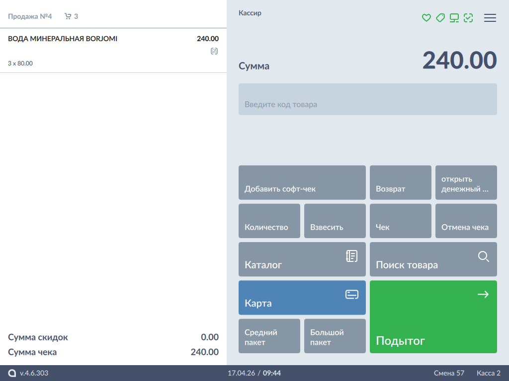 - Считайте код маркировки, после чего товар будет добавлен в чек: