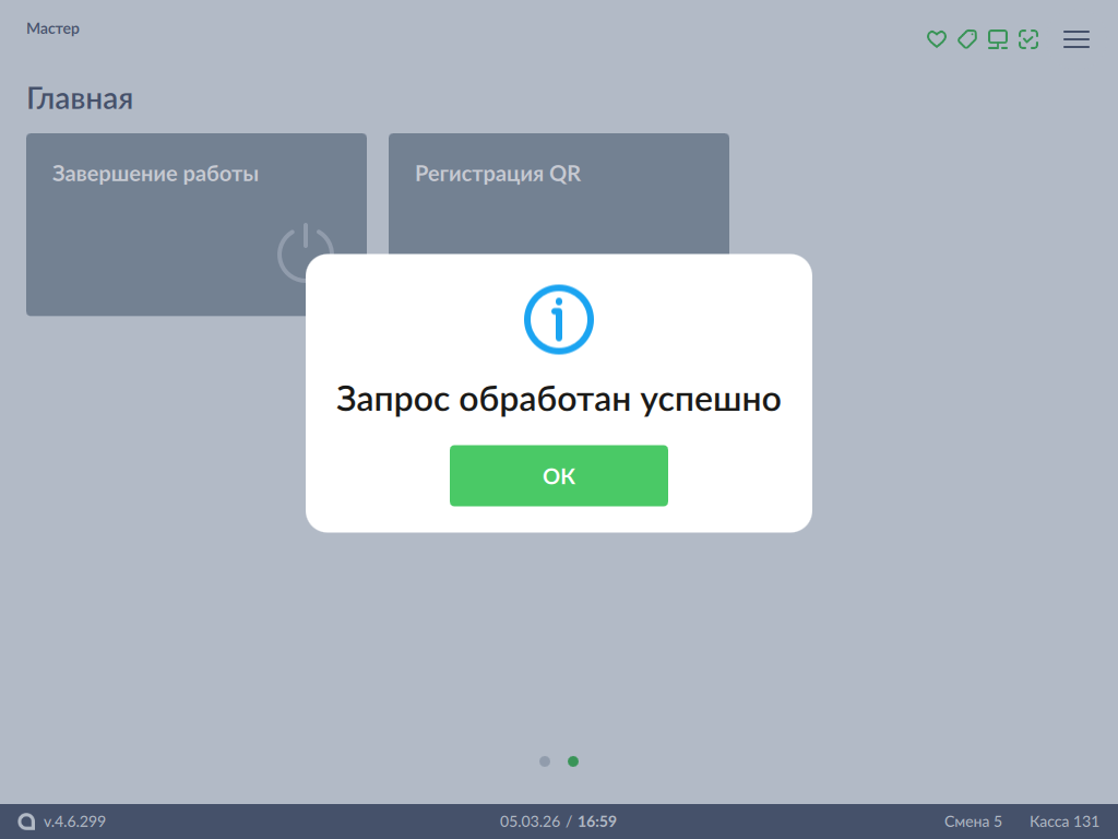 Отсканируйте идентификатор кассовой ссылки или введите его вручную и нажмите "Ввод": - Если регистрация кассовой ссылки была произведена успешно, то на экран будет выведено сообщение: