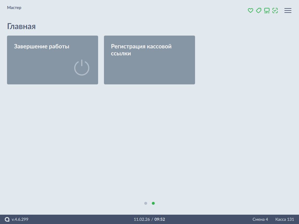 - Для регистрации кассовой ссылки в главном меню выберите пункт "Регистрация кассовой ссылки":