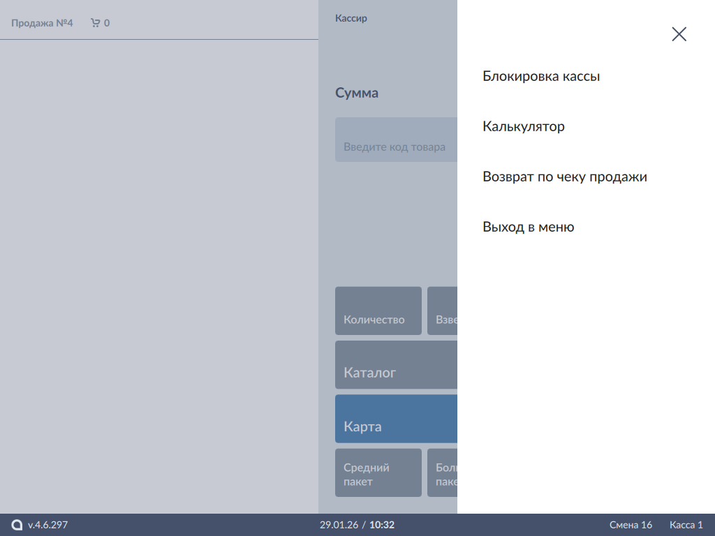 - В боковом меню выберите "Возврат по чеку продажи":
