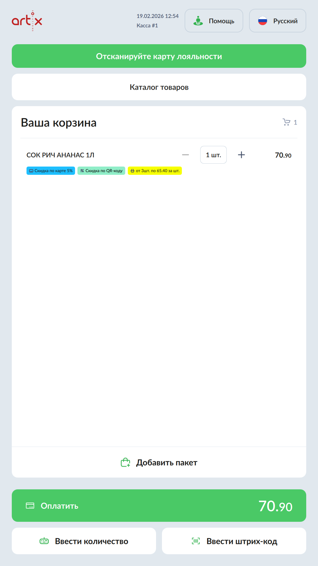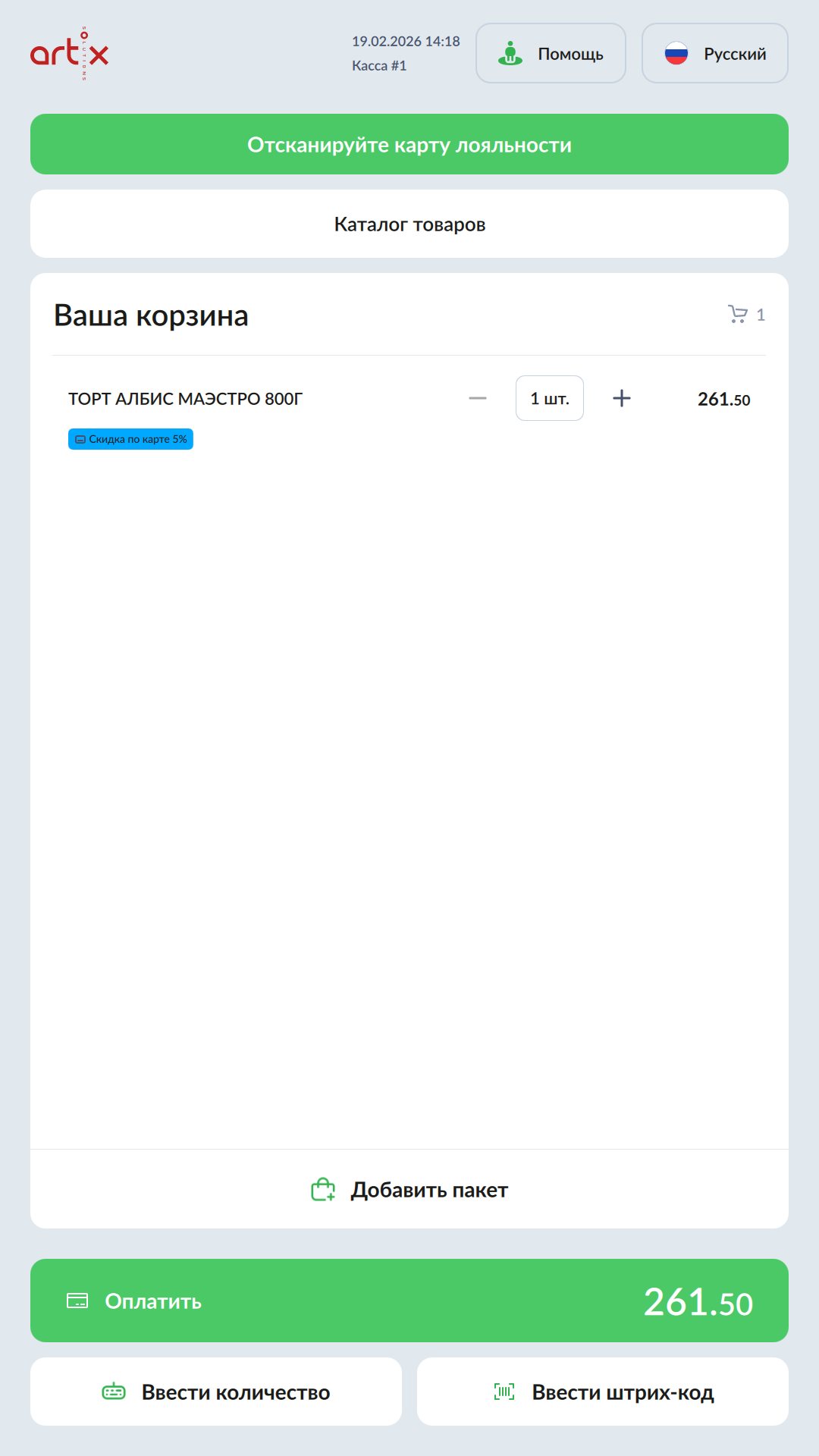В позиции будет отображено уведомление: - Добавить карту.