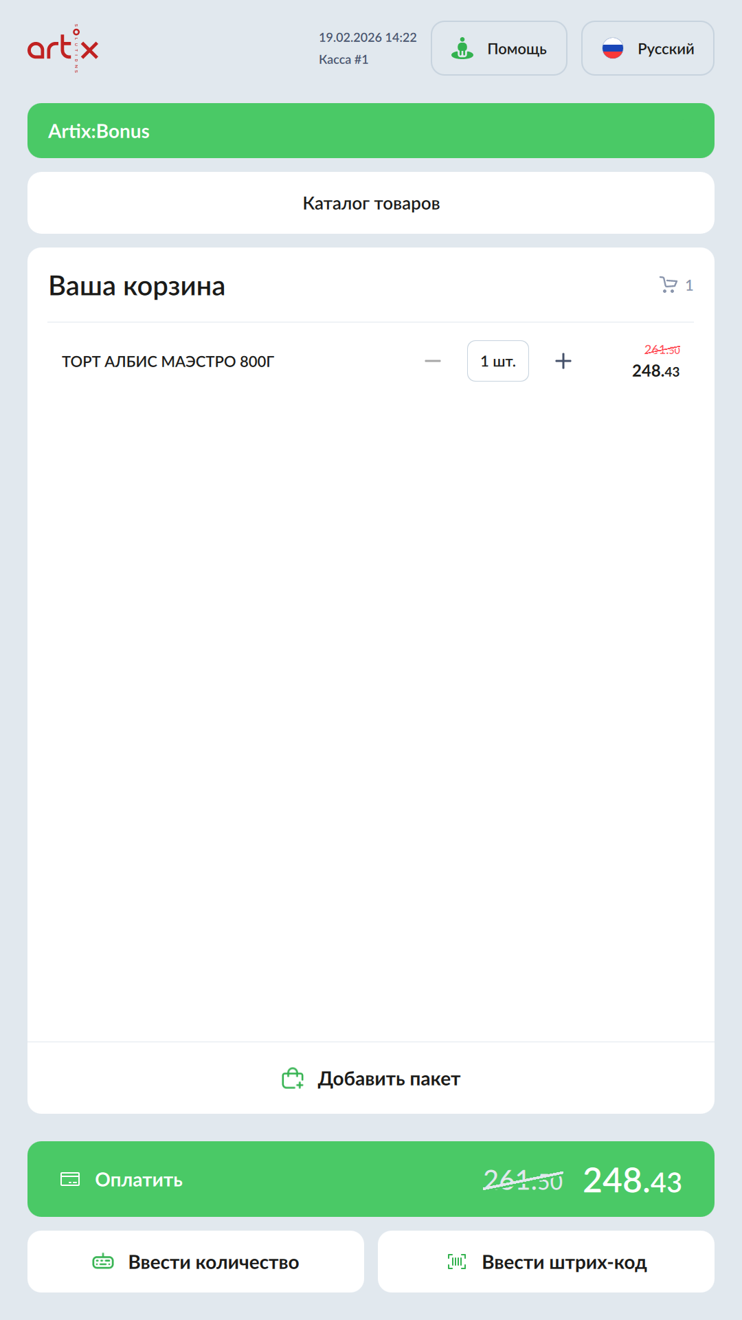- Добавить товар.