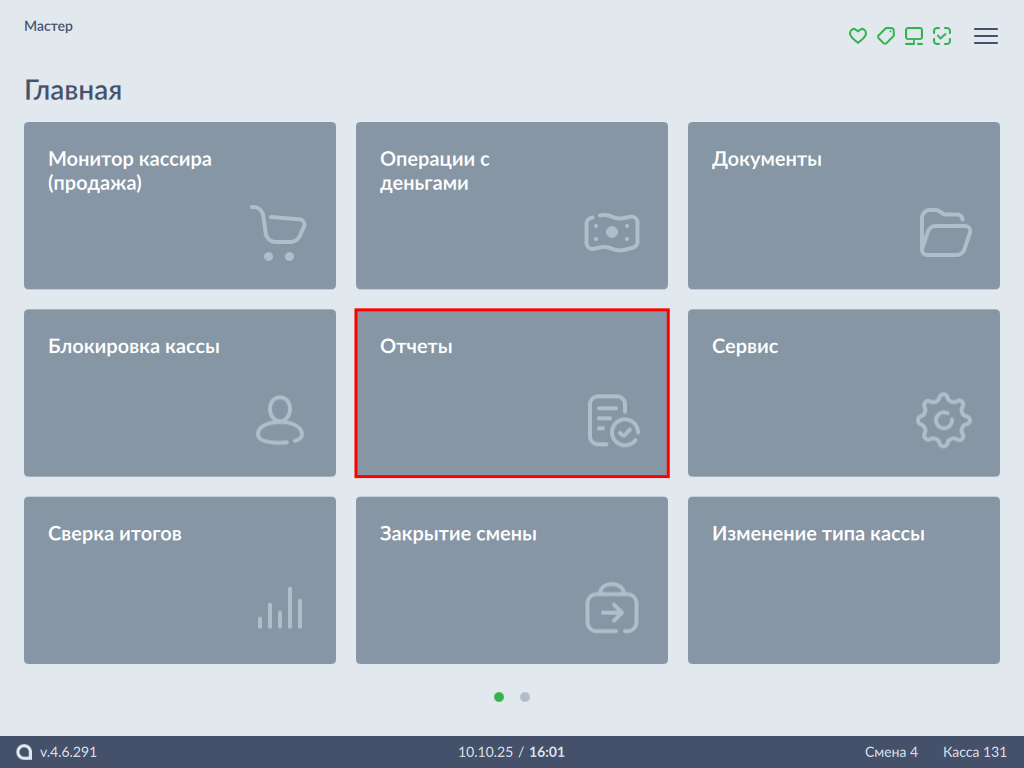 1. Выберите пункт главного меню "Отчеты":