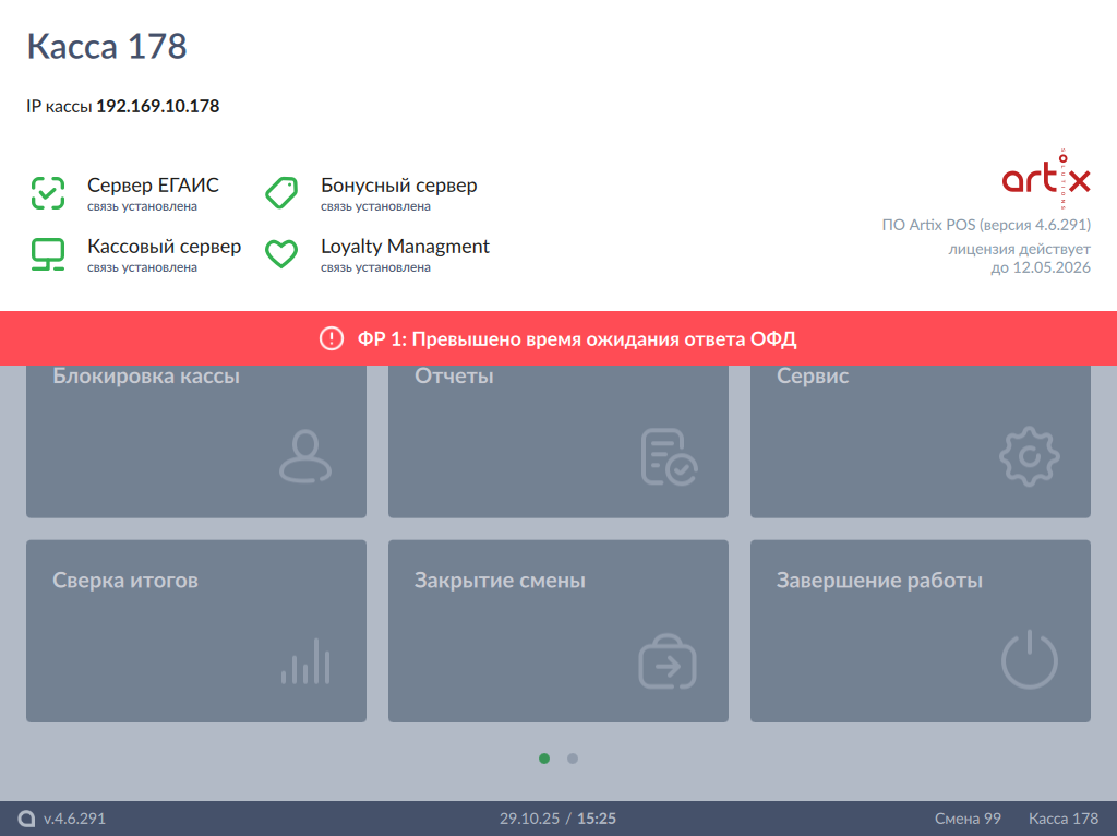 Выдвижная информационная панель ("шторка") отображается при нажатии на индикаторы доступа к сервисам и возможных ошибок или при свайпе вниз: