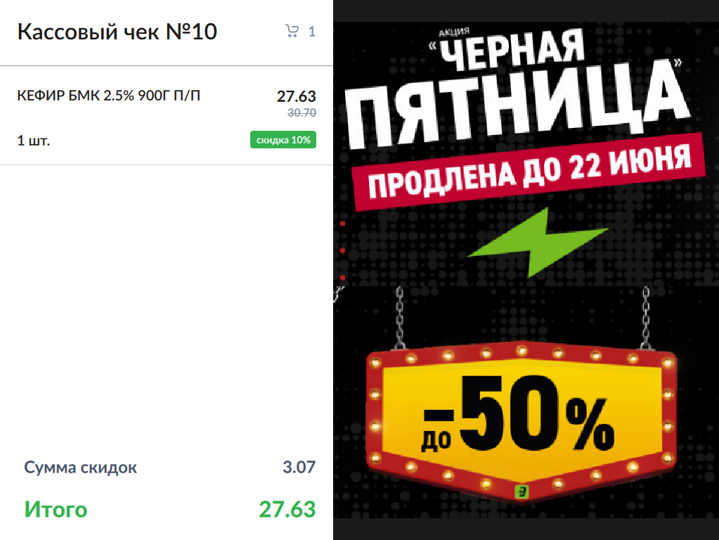 - Отображение окна "Спасибо за покупку" и рекламы после закрытия чека: