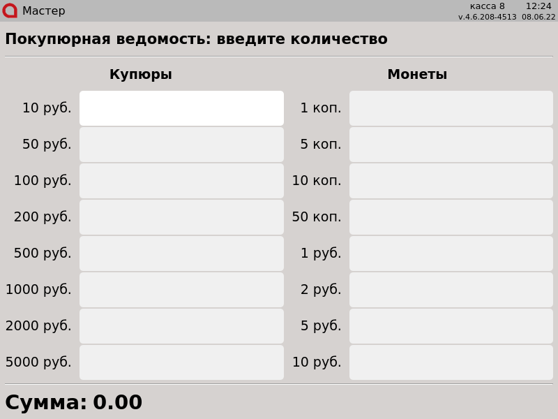 7 - Выем денег. Покупюрная ведомость: введите количество.png
