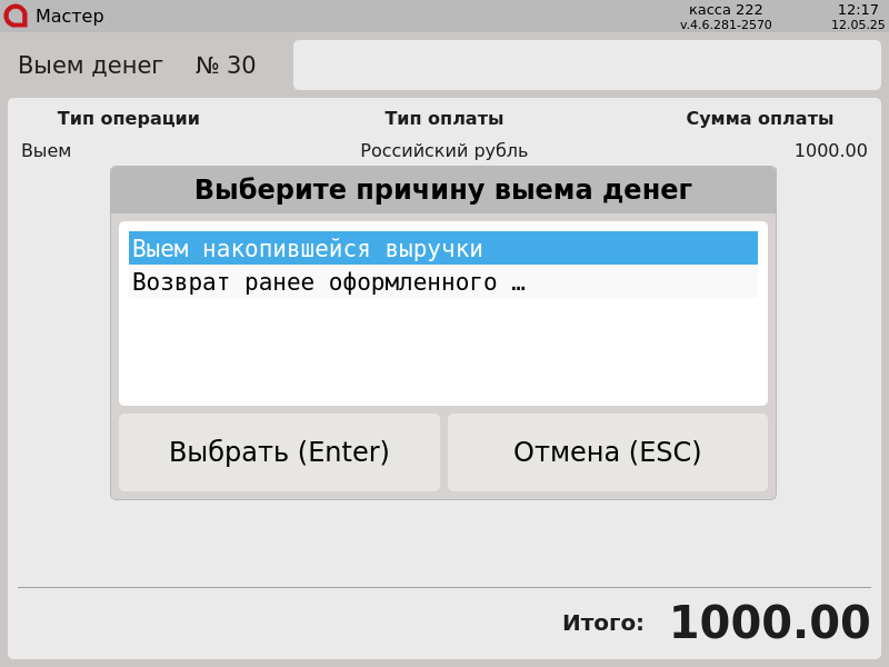 23-Новый интерфейс. Выем денег.Указание причины.png