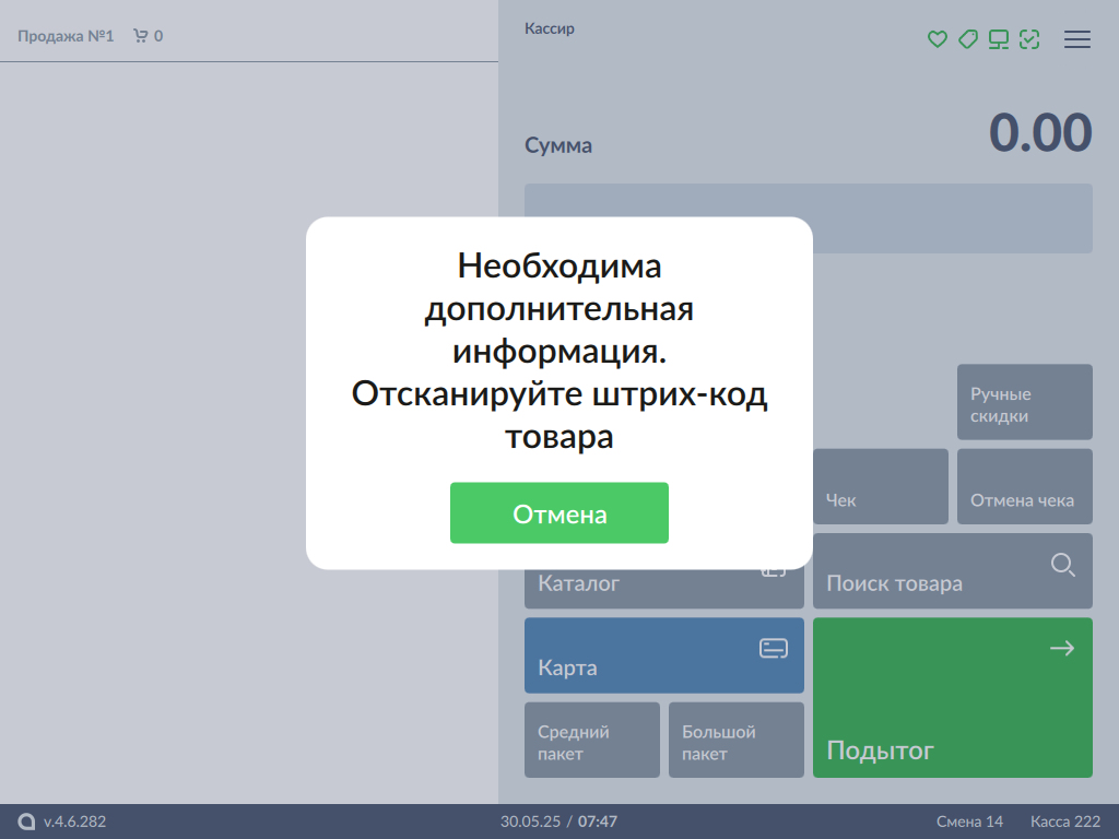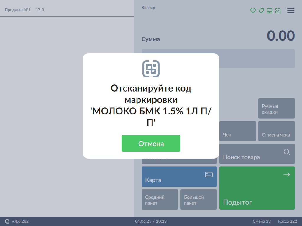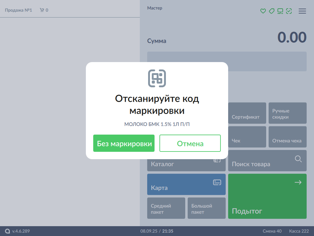 77 - Продажа маркированных товаров. Сканирование кода маркировки. Кнопка Без маркировки.png