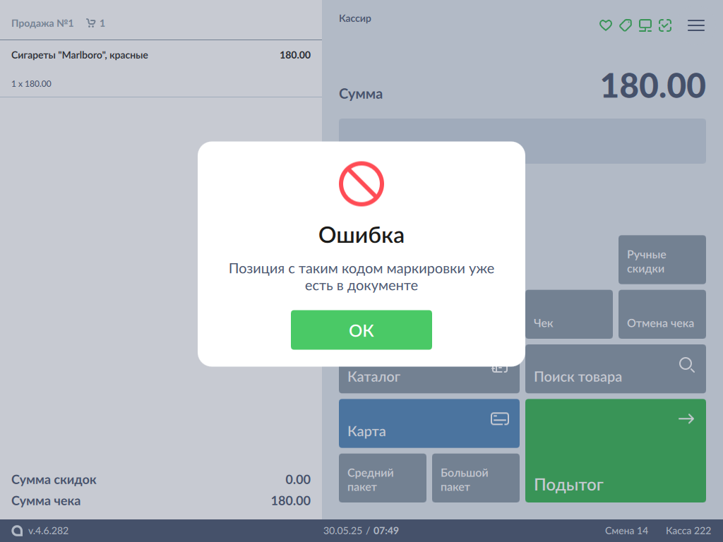 77 - Позиция с таким кодом маркировки уже есть в документе.png