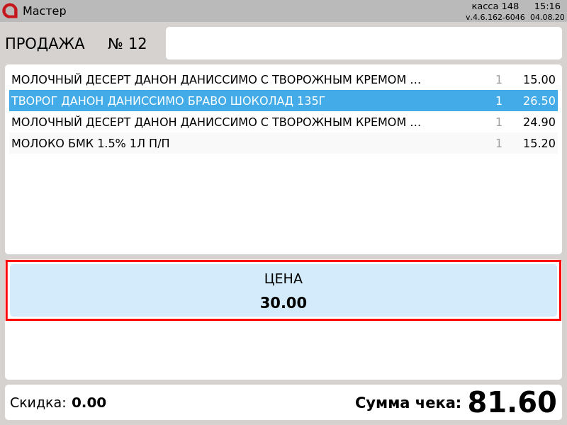 23-Новый Тач. Изменение цены товара в чеке, цена изменена.png