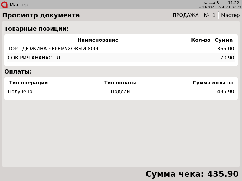 7 - Подели. Возврат по чеку продажи. Товары, запрещенные для возврата, удалены из чека.png