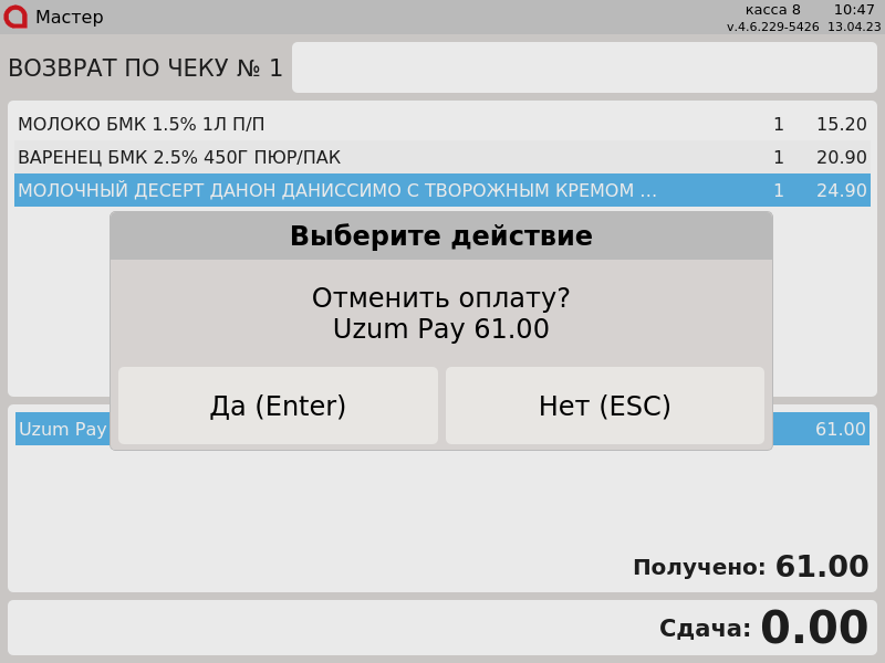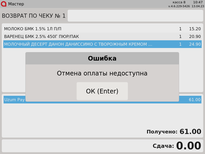 7 - Uzum Pay. Невозможно сторнировать позицию. В документе есть оплата с полным возвратом.png