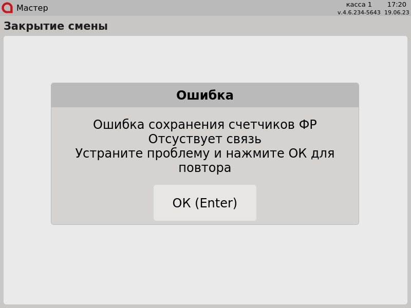 7 - Кассовая смена. Ошибка сохранения счетчиков в ФР.png