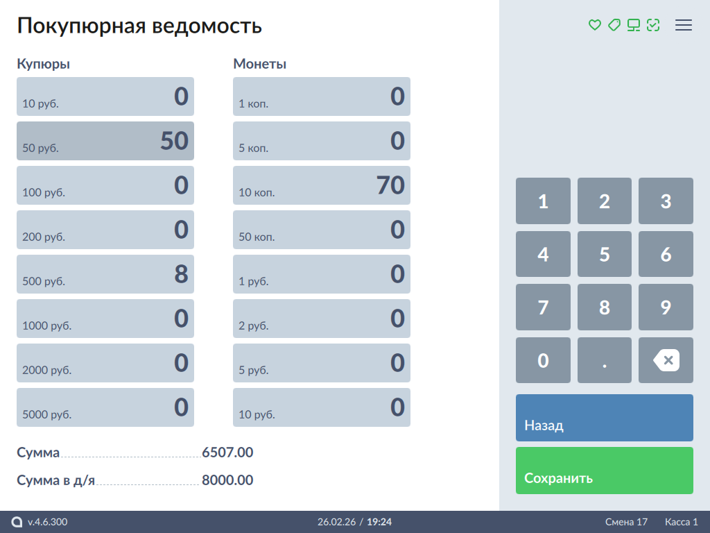 7 - Покупюрная ведомость: введите количество.png