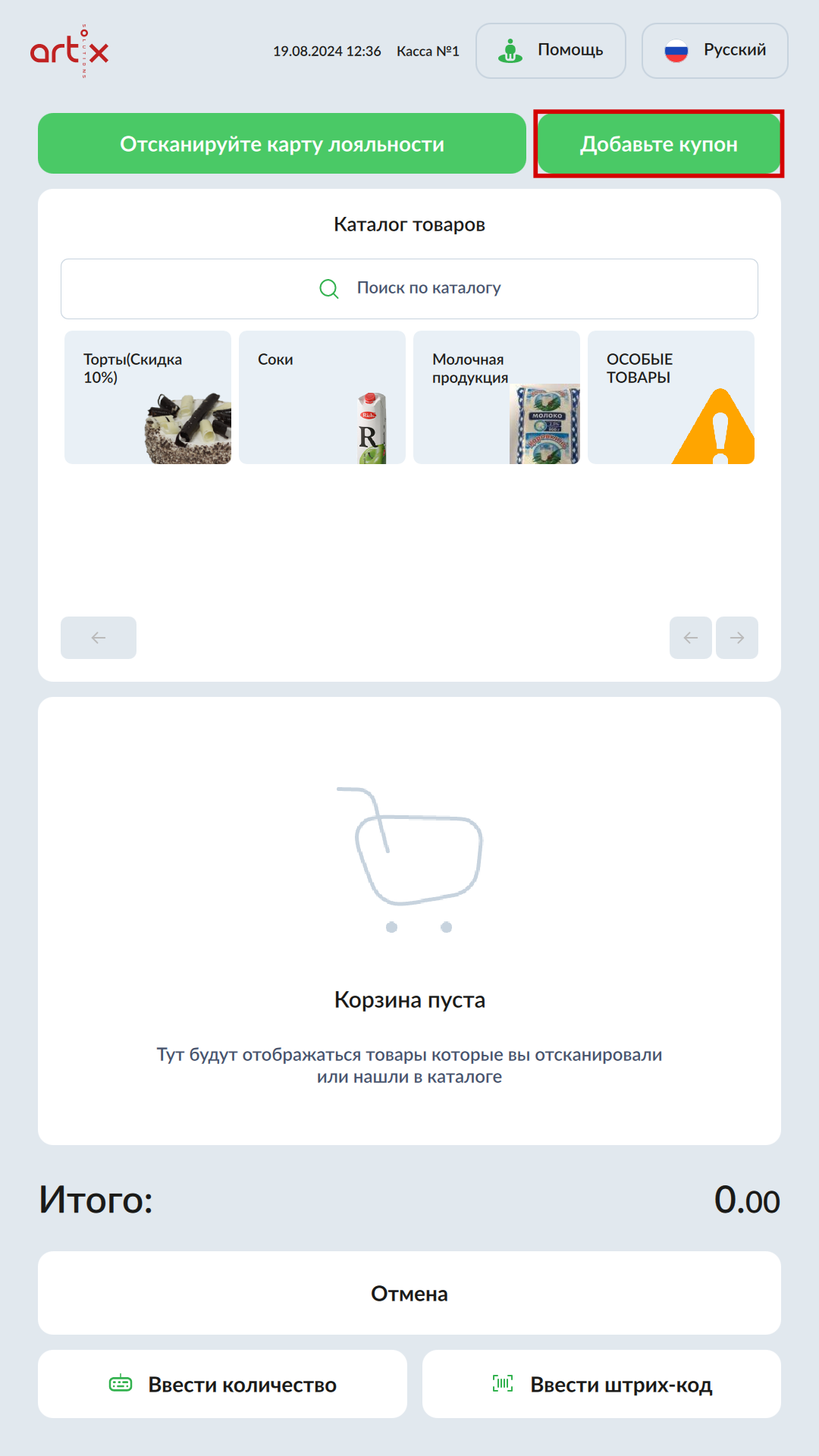 77 - Artix SCO. Новый интерфейс. Горизонтальный экран. Кнопка Добавьте купон + рамка.png