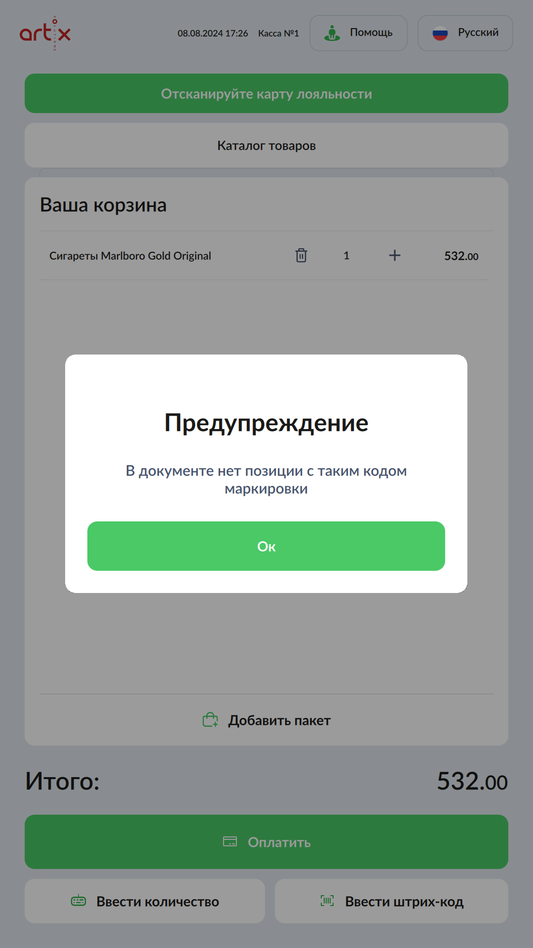 7 - Artix SCO. Новый интерфейс. Сторнирование табачной продукции. В документе нет позиции с таким КМ.png