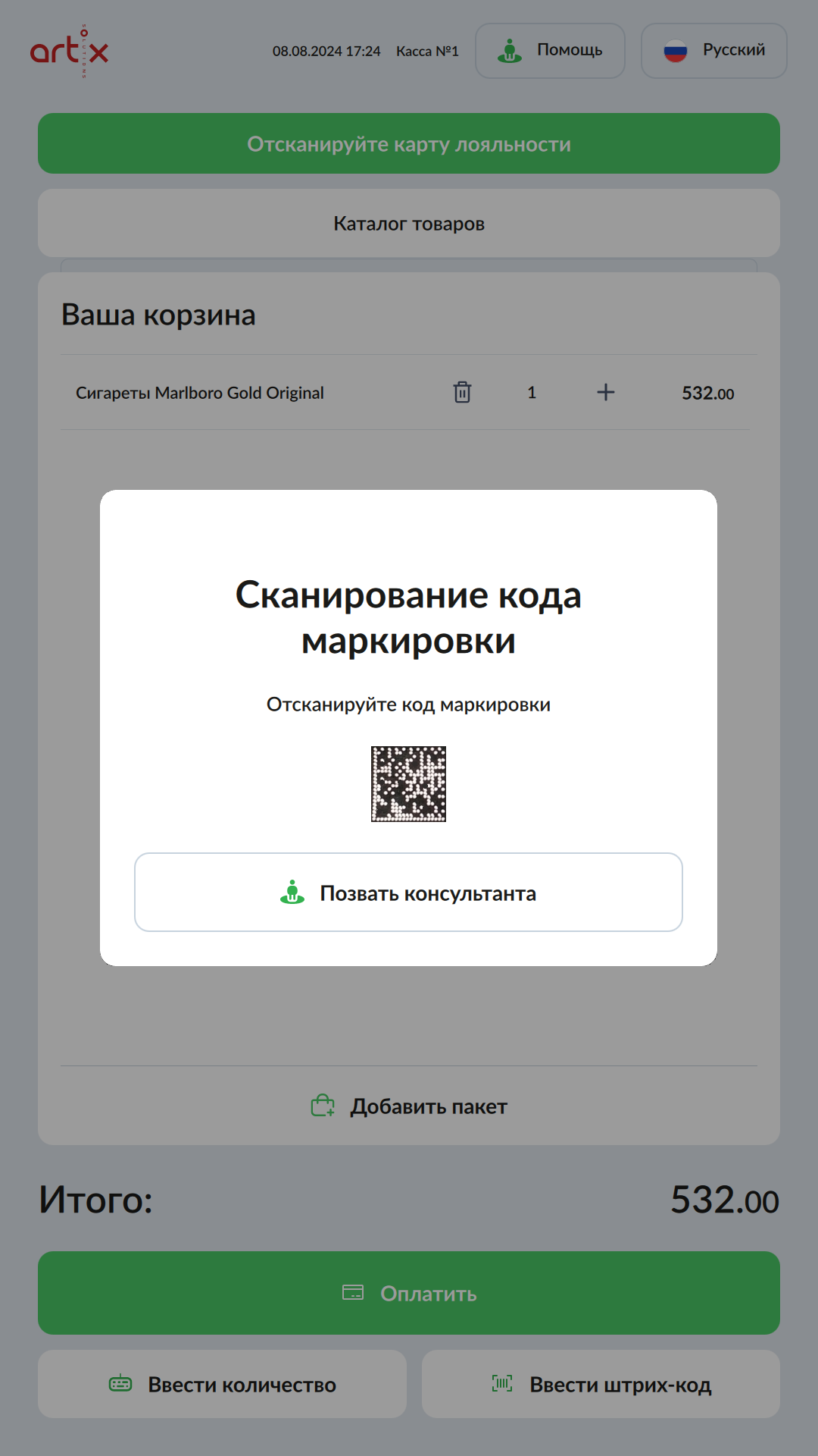 7 - Artix SCO. Новый интерфейс. Сторнирование табачной продукции. Сканируйте КМ.png