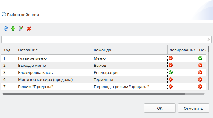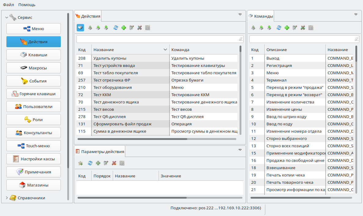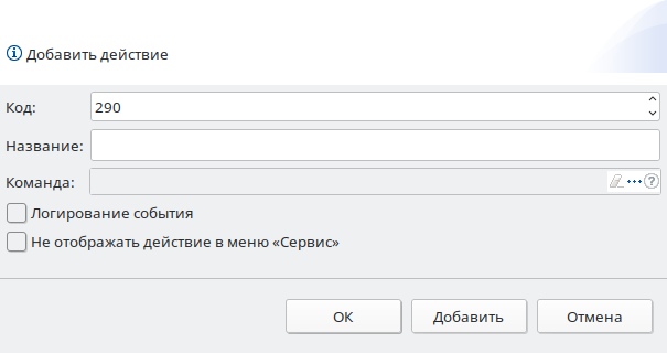 Настройка действий