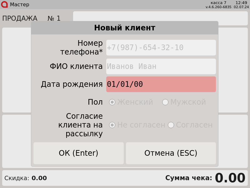 7 - Выдача карт. Ввод данных покупателя. Некорретный формат.png