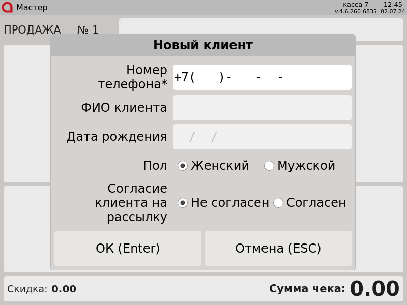 23-Новый интерфейс. Выдача карты. Новый клиент.Ввод телефона.png