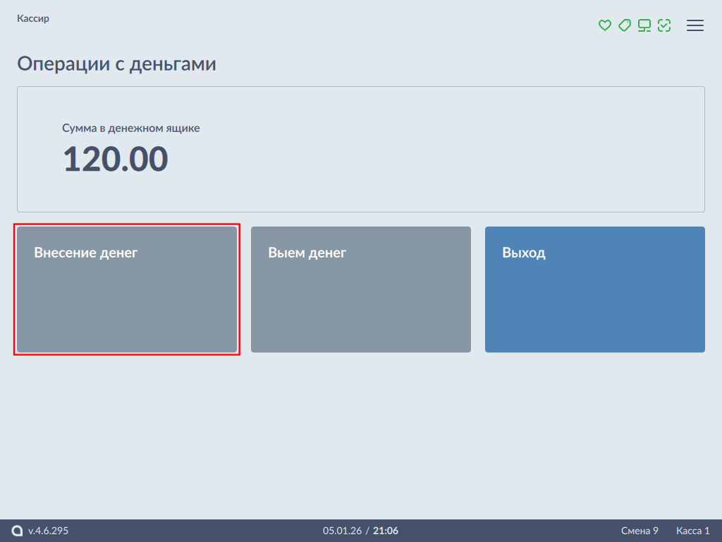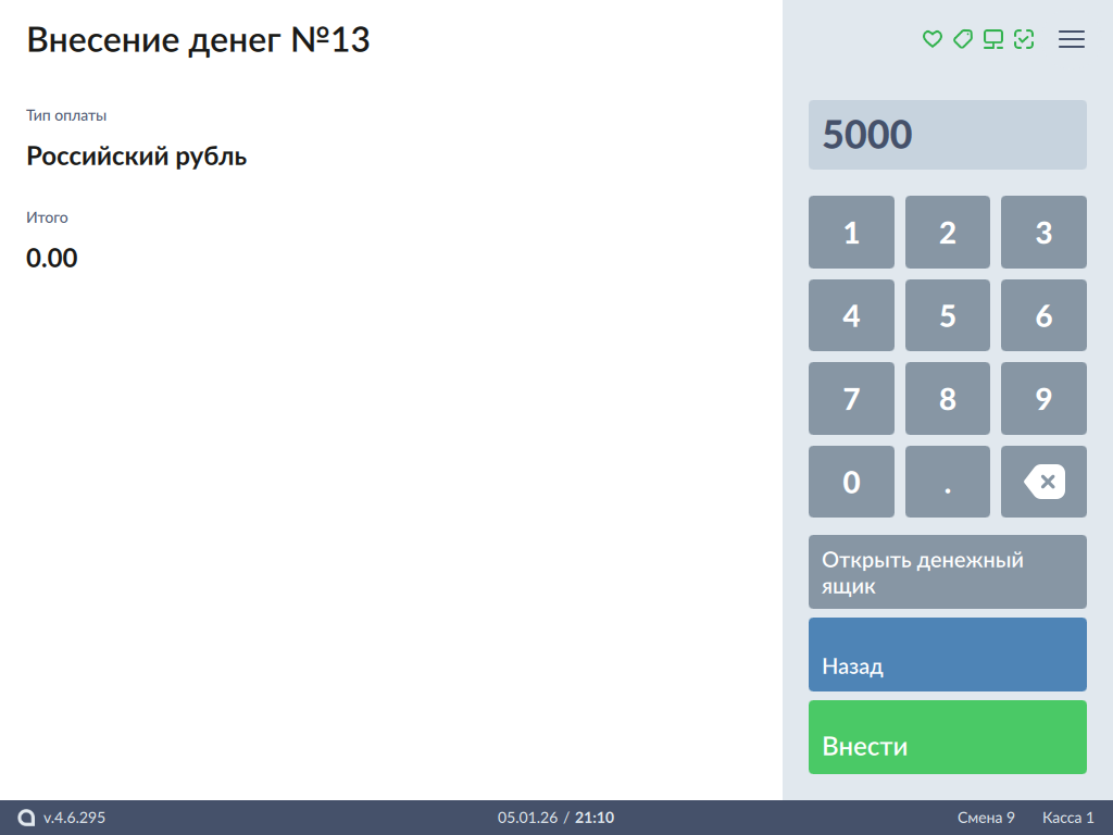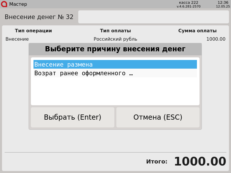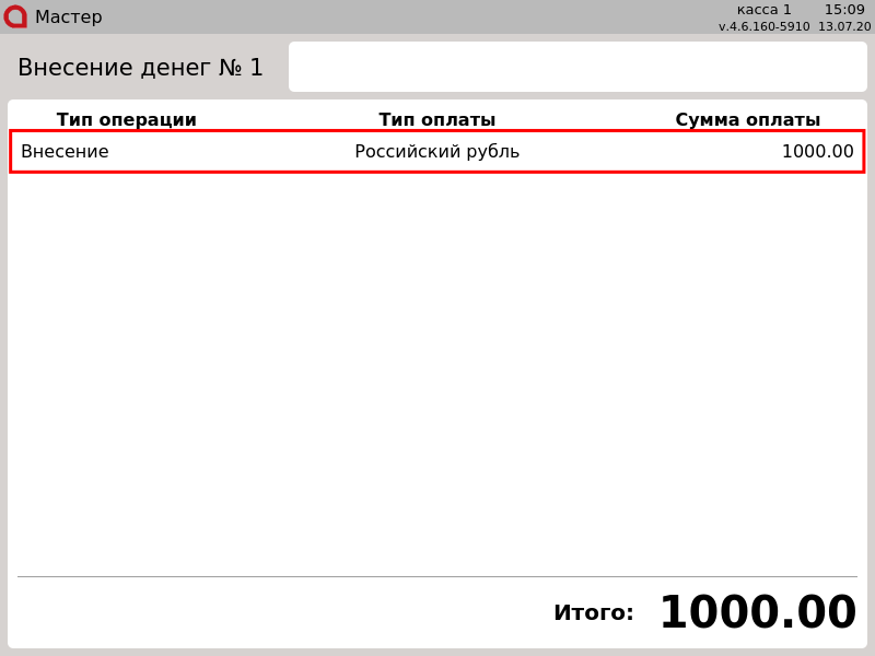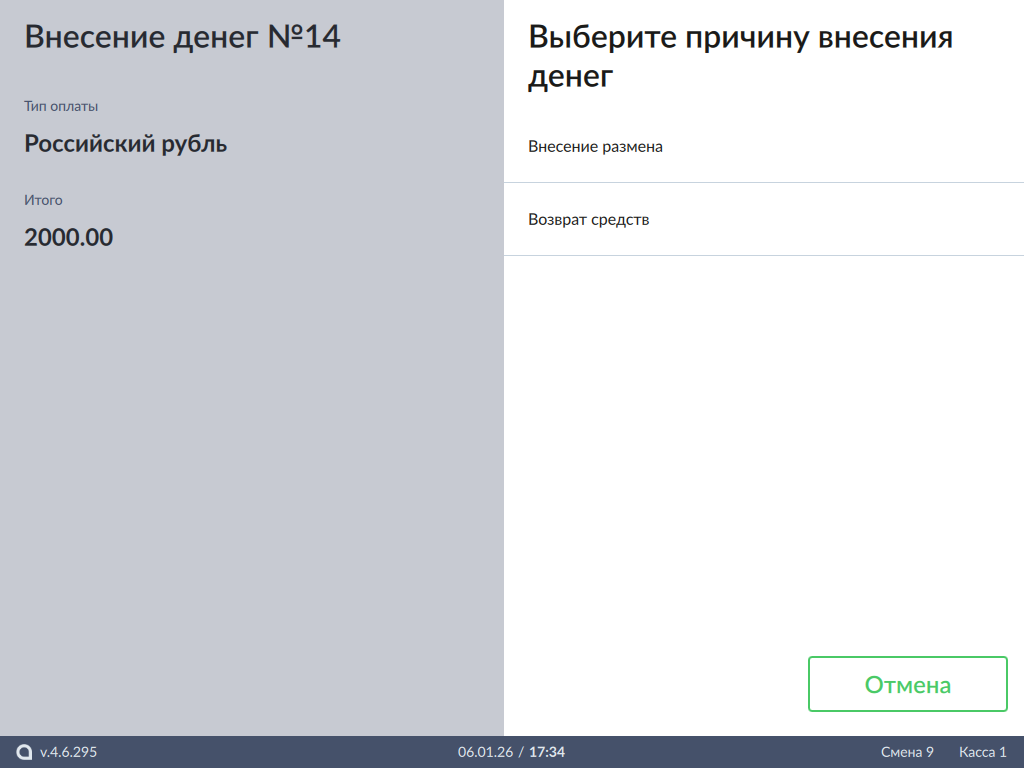 23-Новый интерфейс. Внесение денег. Сумма по умолчанию.Выберите причину внесения.png