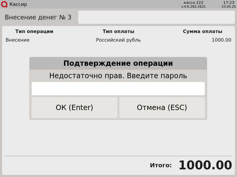 23-Новый интерфейс. Внесение денег. Сумма по умолчанию. Недостаточно прав.png