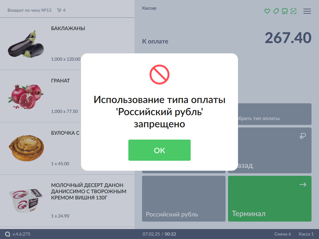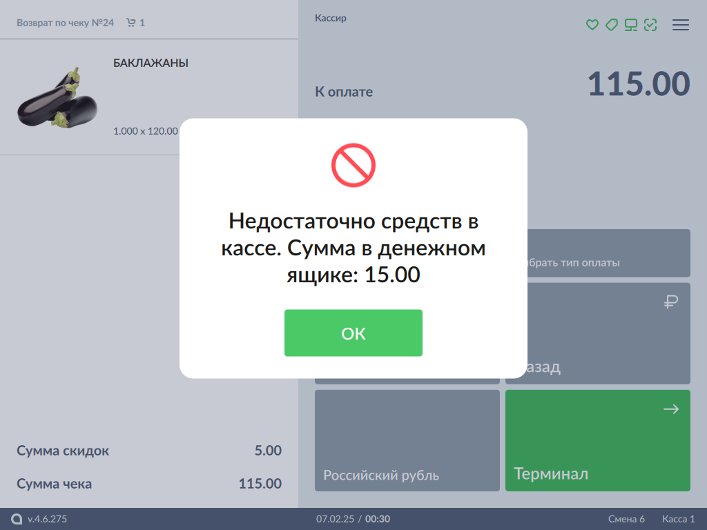 23-Возврат по чеку продажи. Недостаточно средств в ящике.png