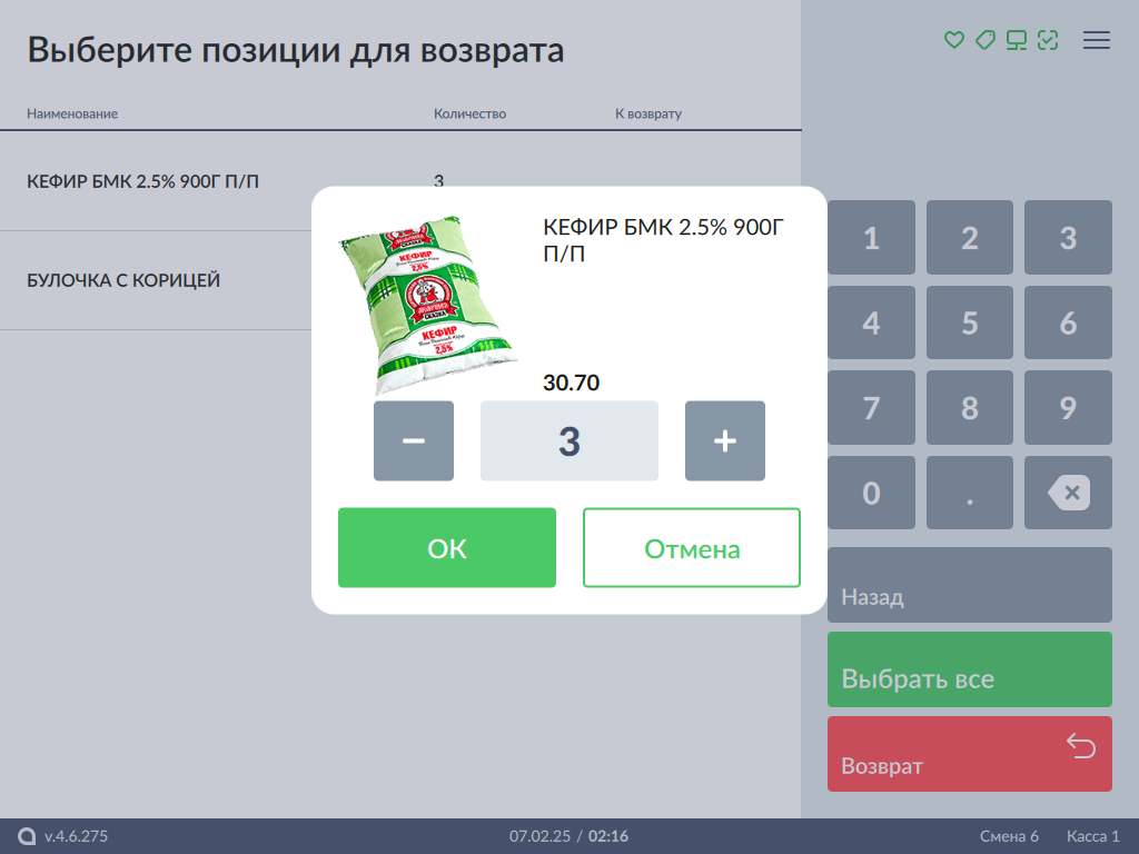 23-Возврат по чеку. Выбор сканером.Введите количество.png