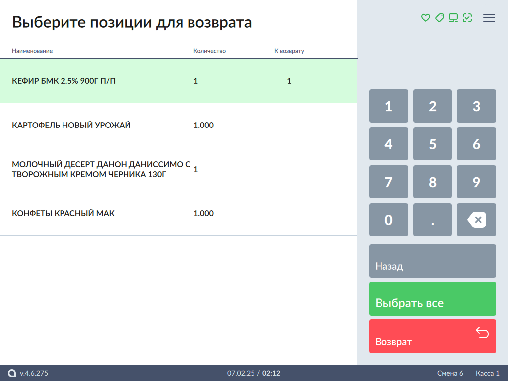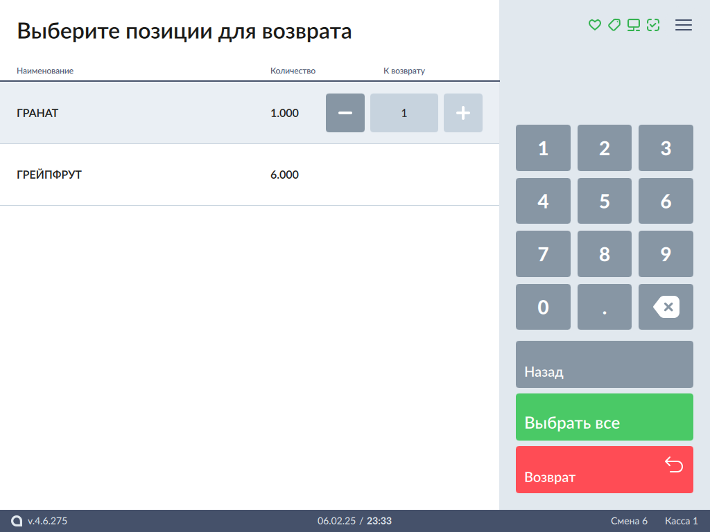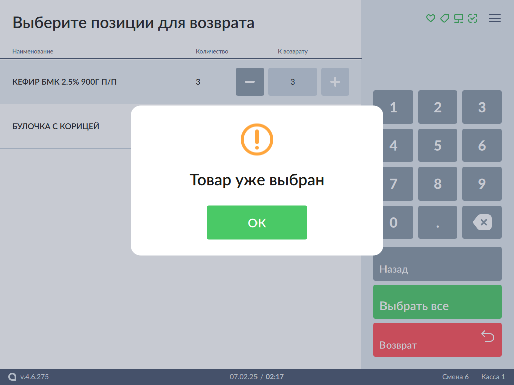 23-Возврат по чеку. Выбор сканером.Товар уже выбран.png
