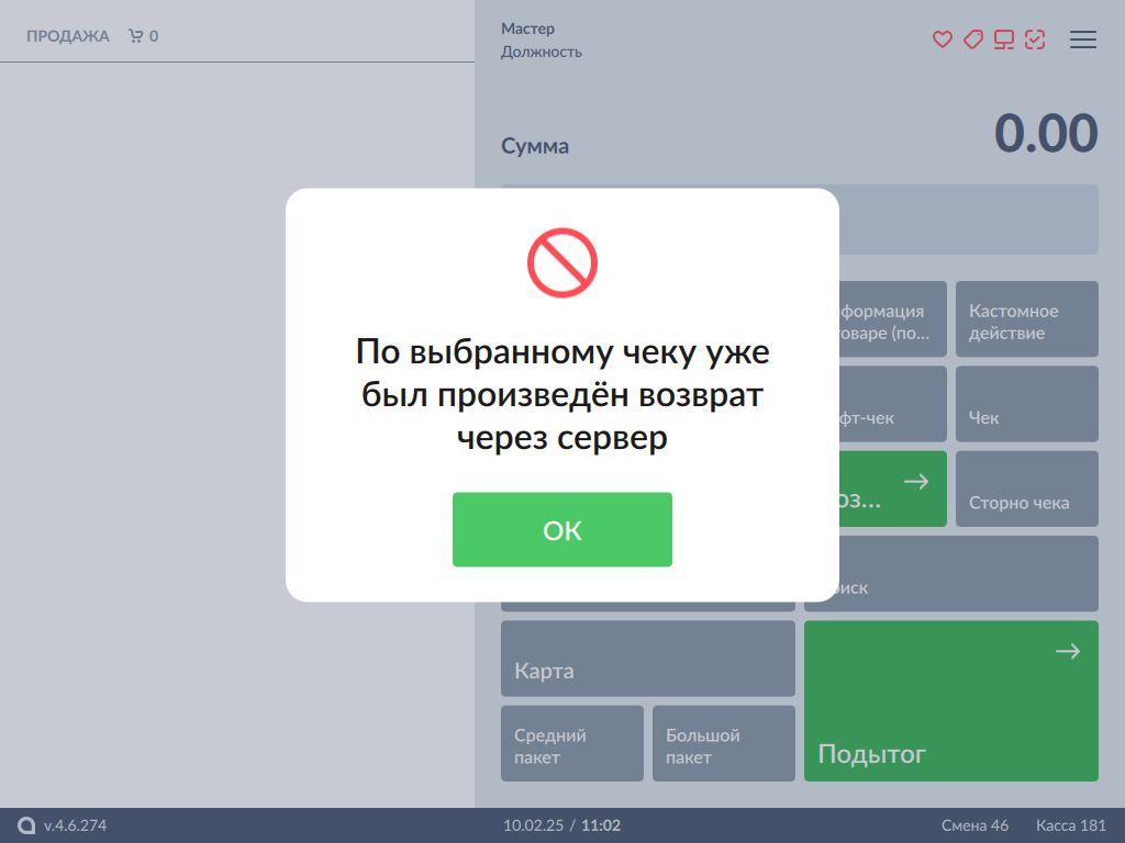 23-Возврат по чеку.По чеку уже был произведен возврат через сервер.png