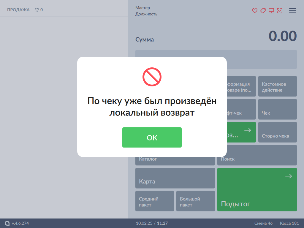 23-Возврат по чеку.По чеку уже быол произведен локальный возврат.png