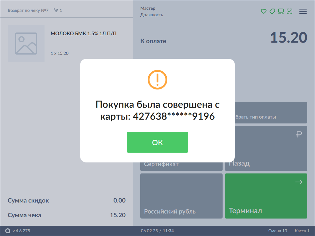 77 - Возврат по чеку. Покупка была совершена с карты.png