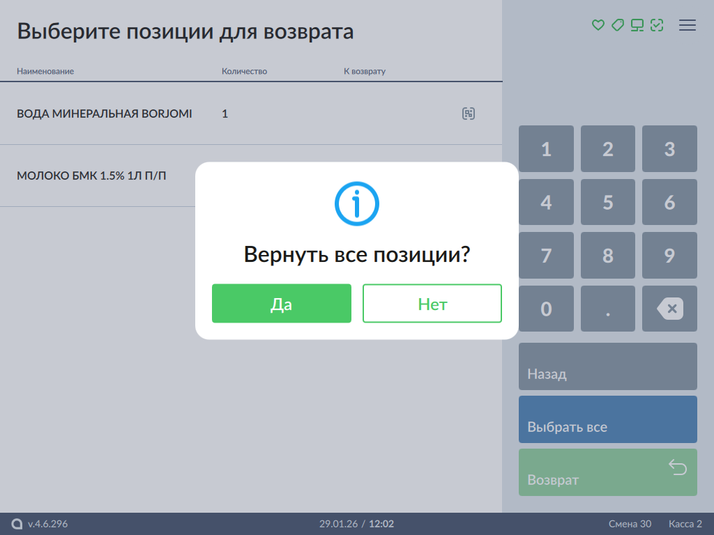 18 - Возврат маркированных товаров. Возврат по чеку. Вернуть все позиции.png