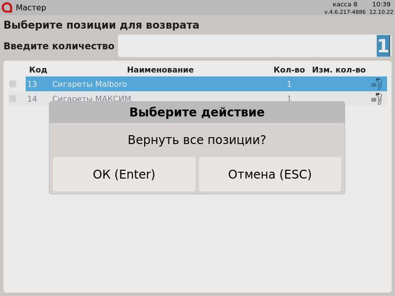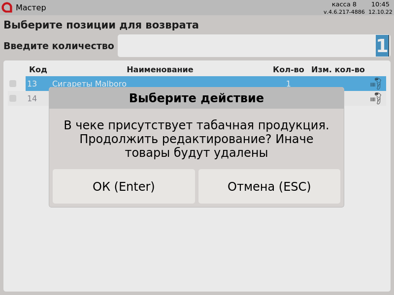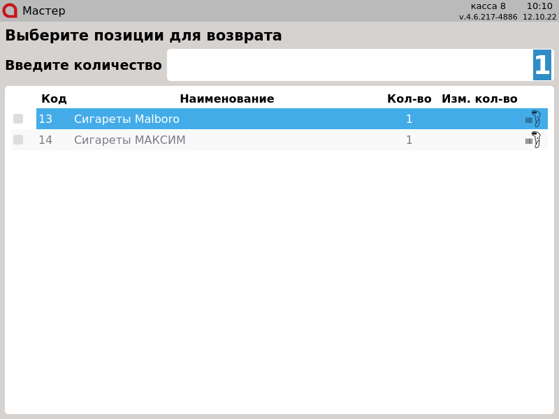 7 - Возврат табачной продукции. Возврат по чеку продажи. Выберите позиции для возврата.png