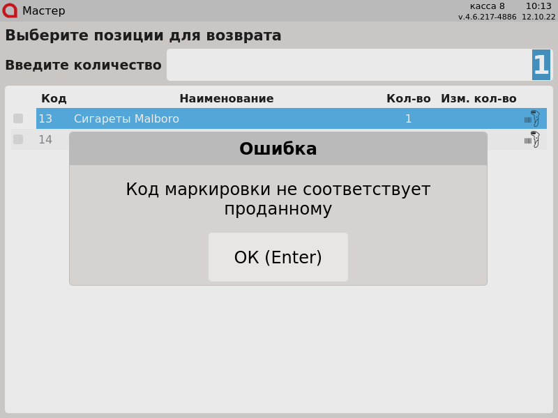 7 - Возврат табачной продукции. Возврат по чеку продажи. Ошибка считывания КМ.png