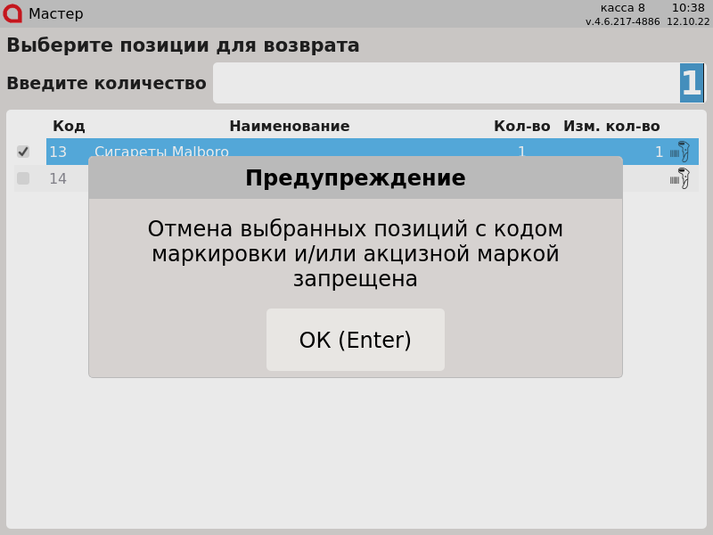 7 - Возврат табачной продукции. Возврат по чеку продажи. Отмена выбранных позиций запрещена.png