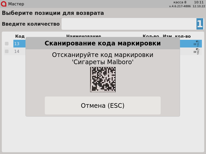 7 - Возврат табачной продукции. Возврат по чеку продажи. Сканирование кода маркировки.png