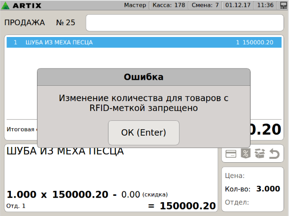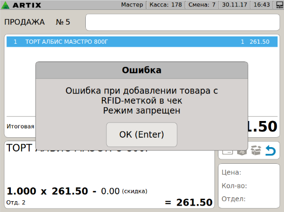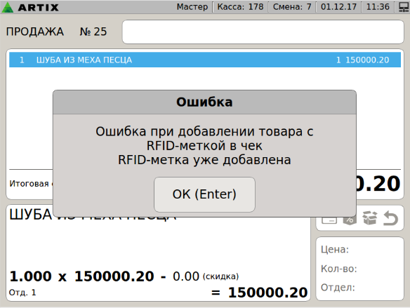7 - Меховые изделия. Ошибка при добавлении товара с RFID-меткой в чек. RFID метка уже была добавлена ранее. v2.png