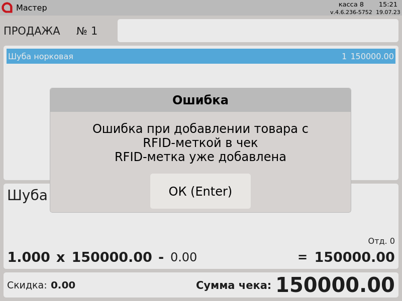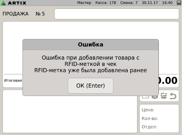 7 - Меховые изделия. Ошибка при добавлении товара с RFID-меткой в чек. RFID метка уже добавлена. v2.png