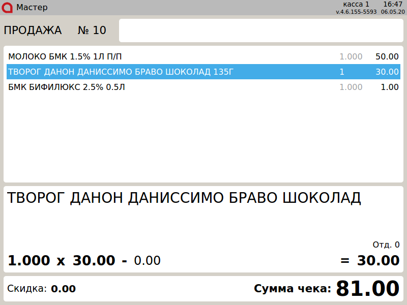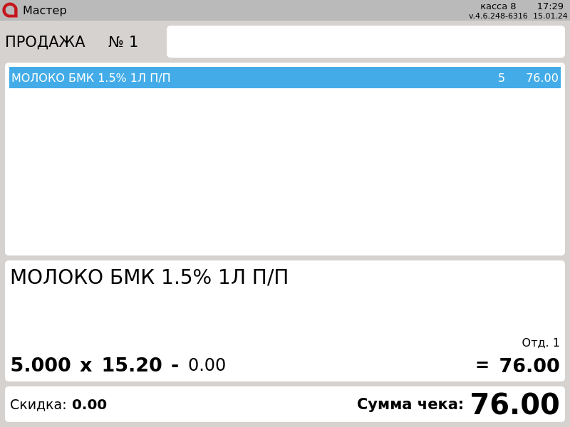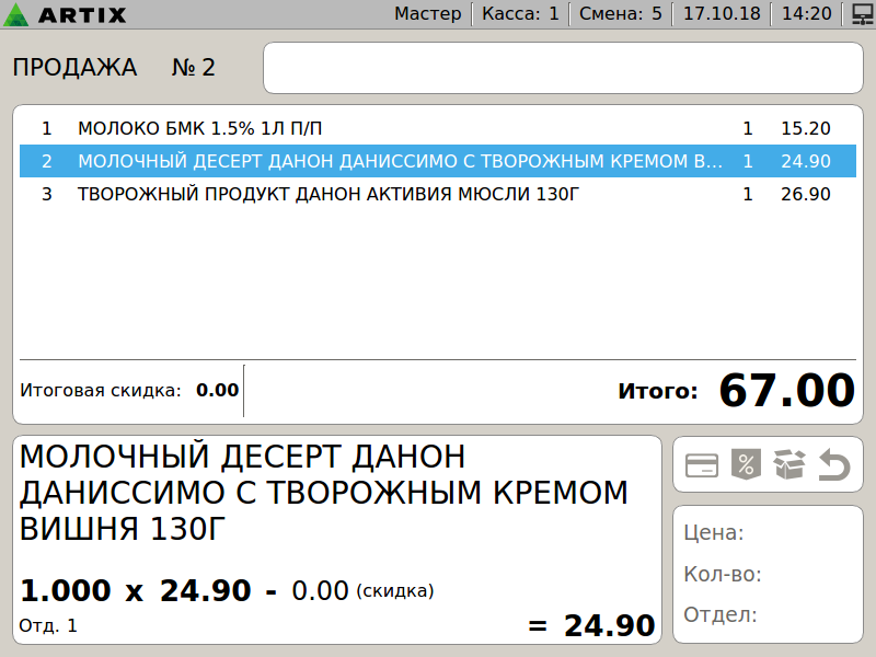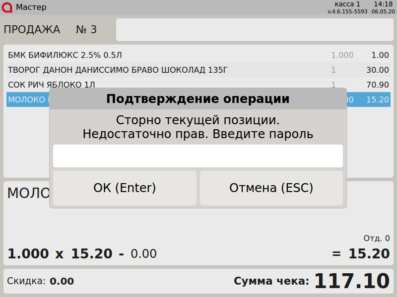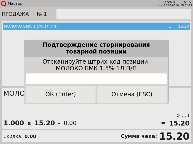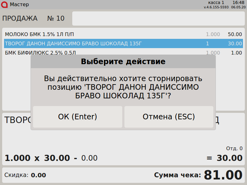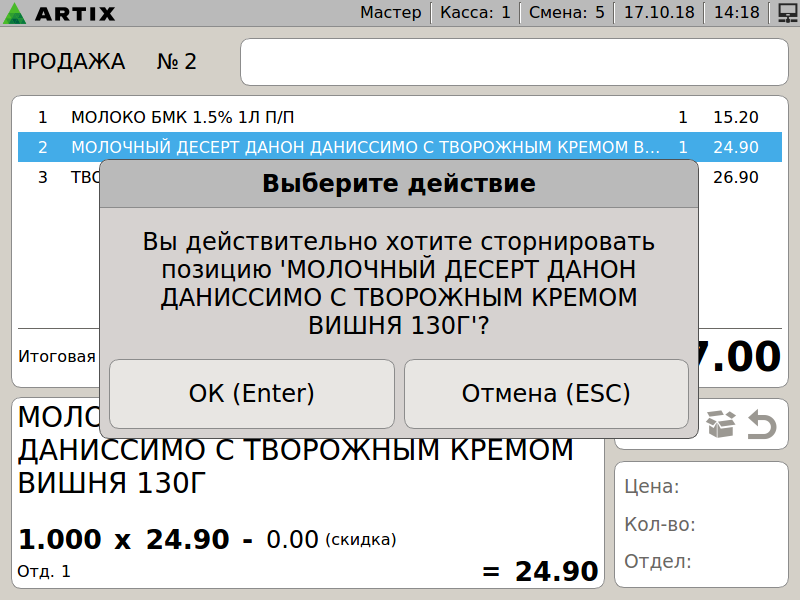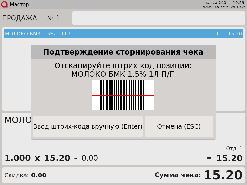 7 - Сторнирование товара. Сторнирование позиции, добавленной не по штрих-коду.png