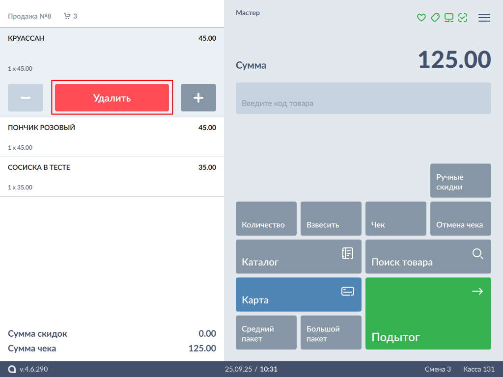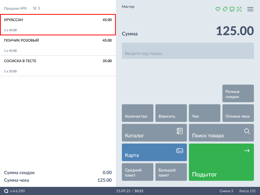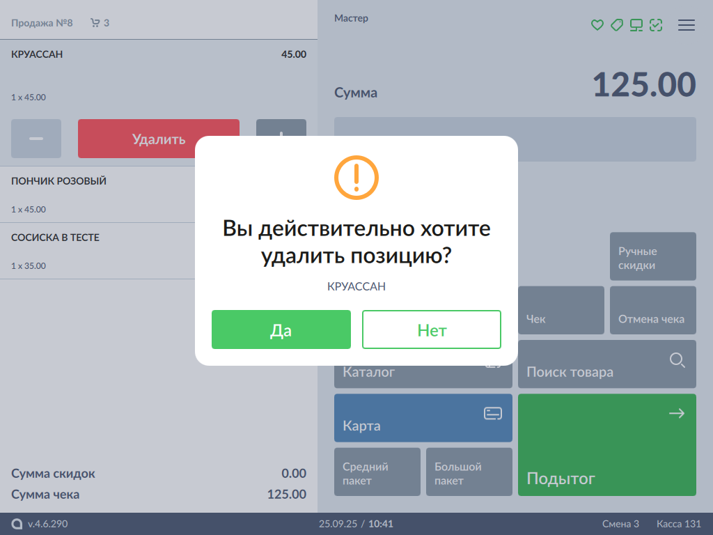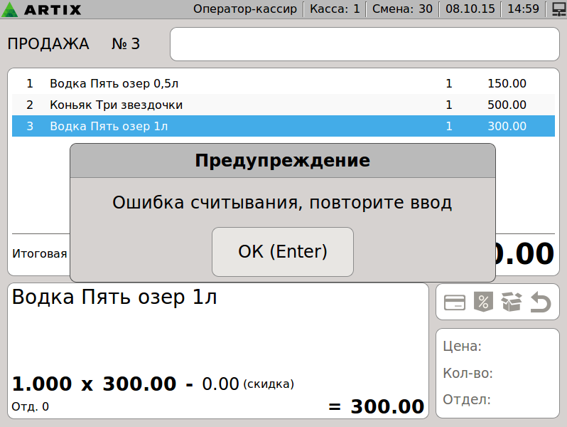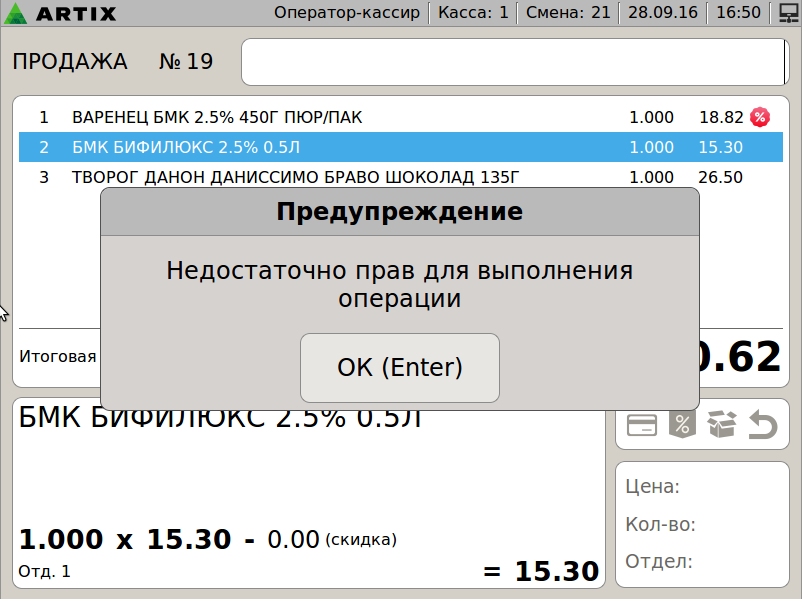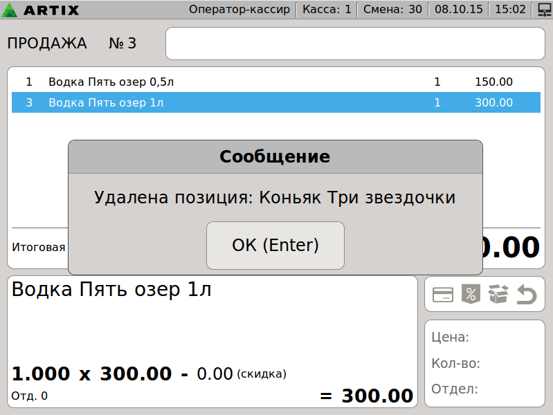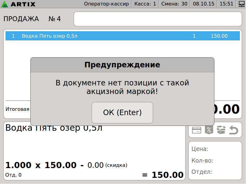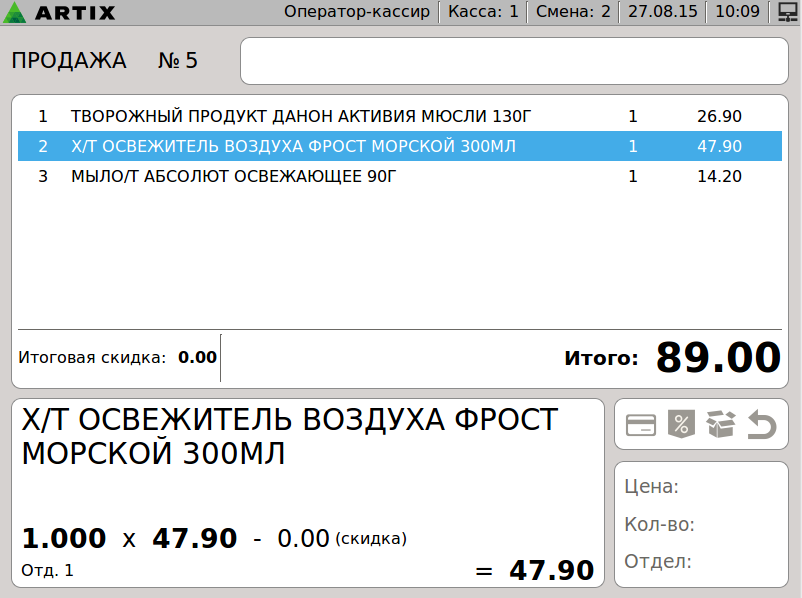 599 - Artix POS 5.0. Сторнирование товара. Сторнирование позиции. Выбор позиции + Рамки.png