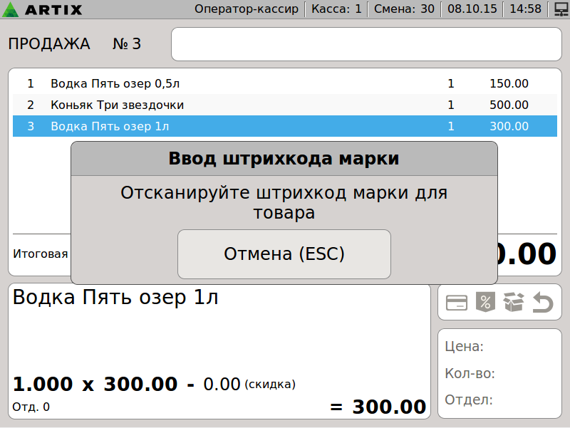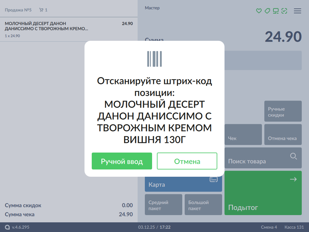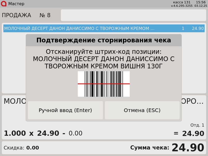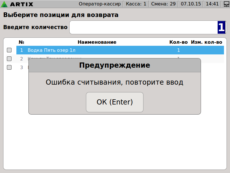 599 - Artix POS 5.0. Сторнирование чека. Сторнирование с вводом ШК случайного товара.png